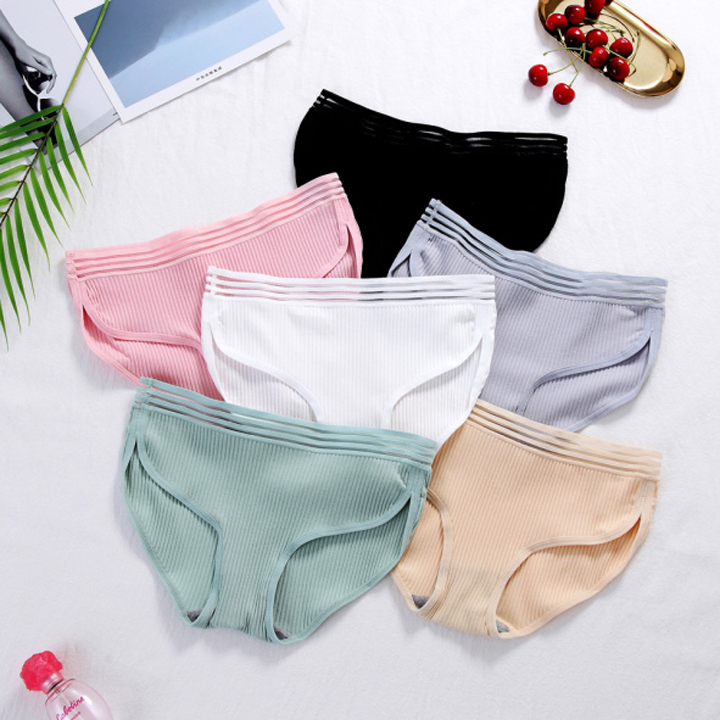 Combo 5 Quần lót nữ gân tăm Viền Chéo - ZQG02 (Giao màu ngẫu nhiên)