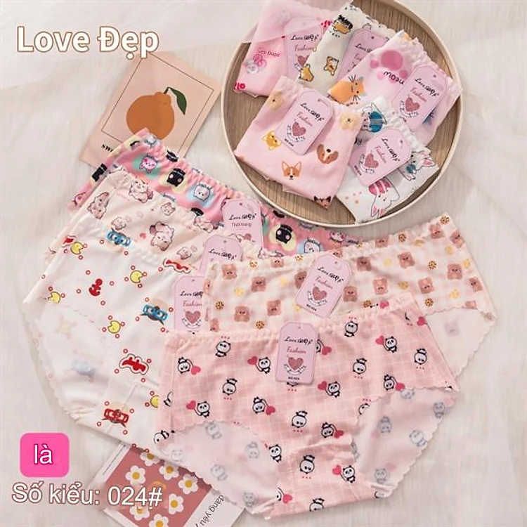 Combo 5 Quần Lót Nữ Su Tăm Nhiều Họa Tiết Love Đẹp 024 – Siêu Mềm, Co Giãn 4 Chiều