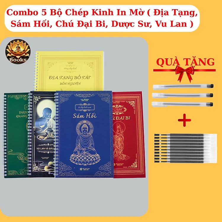 COMBO 5 Sách Chép Kinh - Kinh Địa Tạng, Sám Hối, Chú Đại Bi, Dược Sư, Vu Lan - PAI BOOKS.