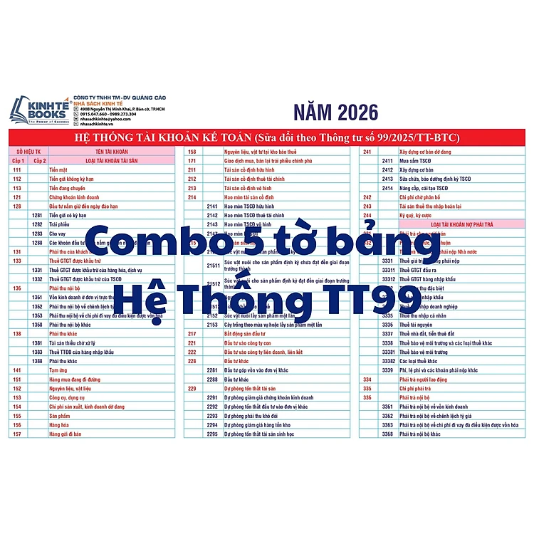 Combo 5 tờ - Hệ Thống Tài Khoản Kế Toán ( Sửa đổi theo Thông tư số 99/2025/TT-BTC)
