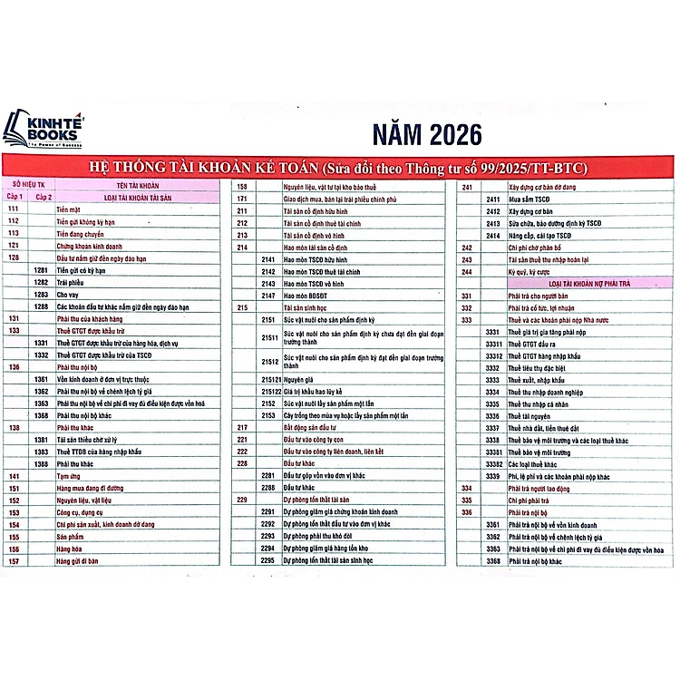 COMBO 5 TỜ - Hệ Thống Tài Khoản Kế Toán ( Sửa Đổi Theo Thông Tư Số 99/2025/TT-BTC)
