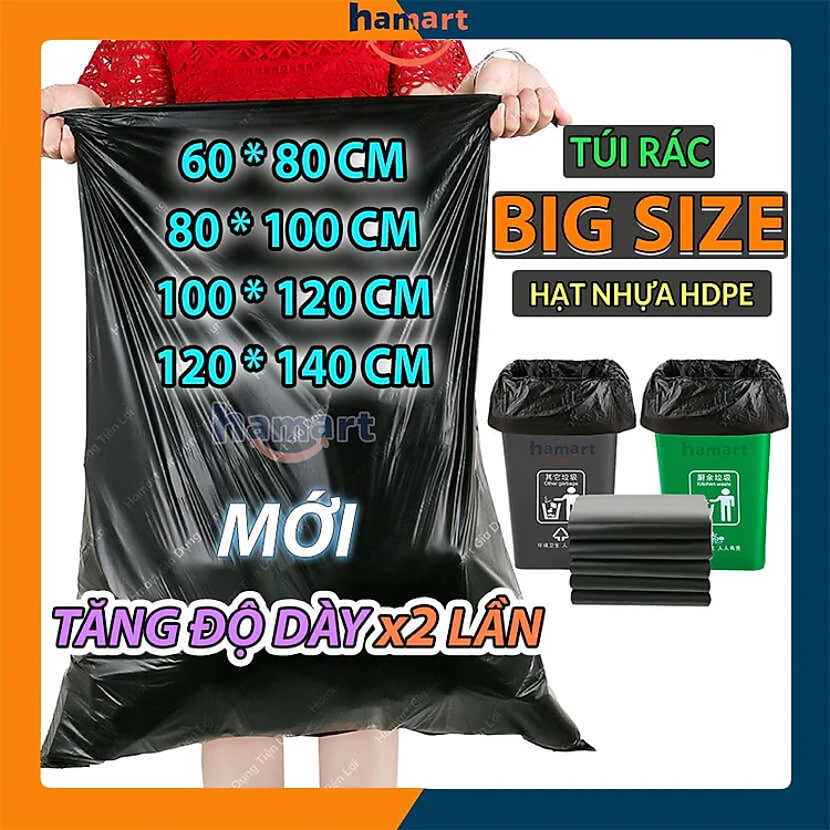 COMBO 5 Túi Đựng Rác Size Đại Ko Quai HDPE Lớn Siêu Chắc Bao Đựng Rác Nylon To Màu Đen Tiện Lợi