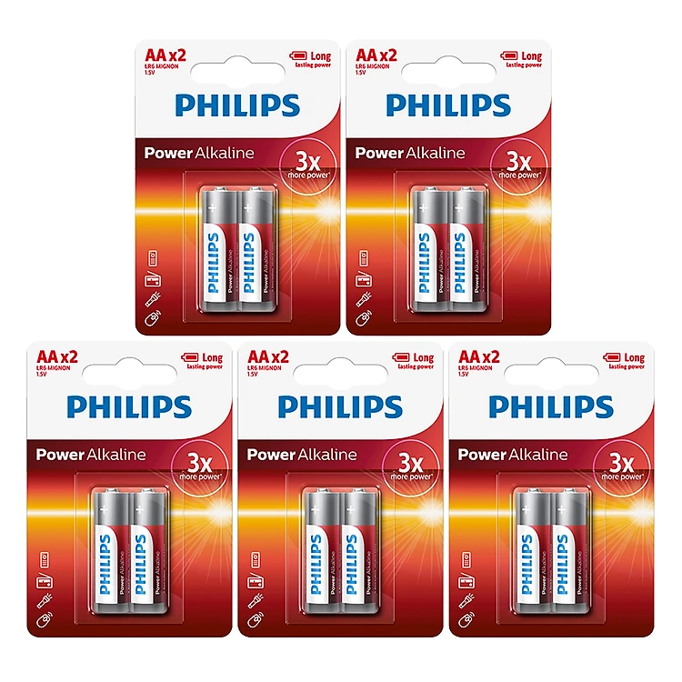 Combo 5 Vỉ - Pin Kiềm (Alkaline) Philips AA LR6P2B (10 Viên AA)