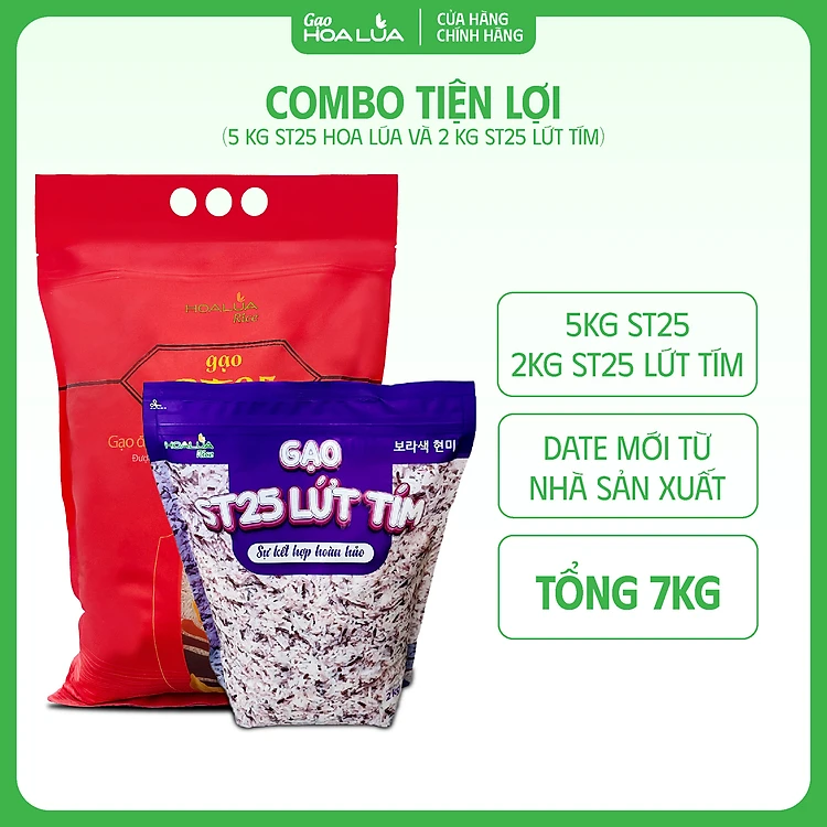 [Tiện Lợi] Combo 5kg Gạo ST25 + 2kg Gạo ST25 Lứt Tím (Tổng 7kg)