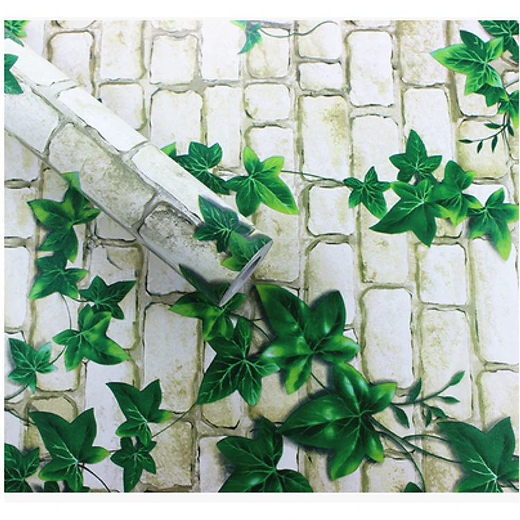 Combo 5m Decal Giấy Dán Tường Gạch Trắng Lá Xanh (5mx0.45m)