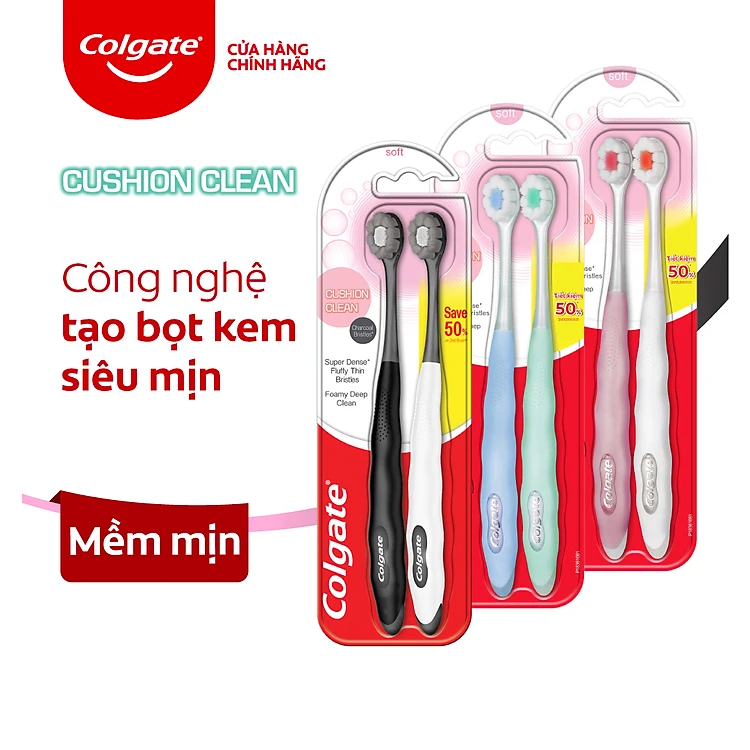 Combo 6 bàn chải đánh răng Colgate Cushion Clean công nghệ tạo bọt kem siêu mịn kèm nắp bảo vệ
