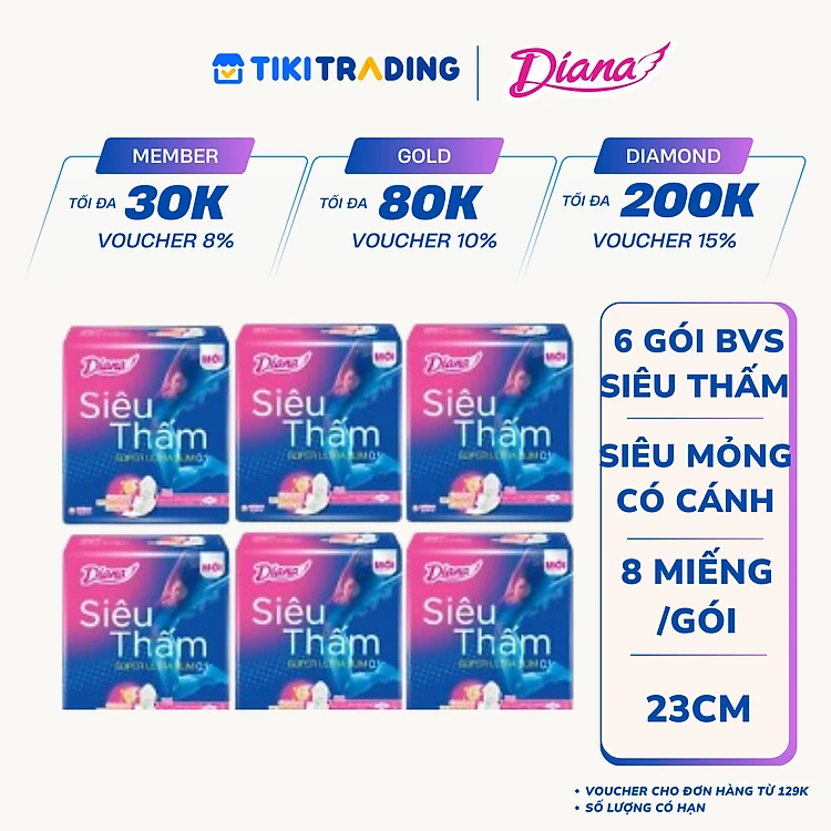 Combo 6 Băng Vệ Sinh Diana Siêu Thấm Siêu Mỏng 0.1 (Gói 8 Miếng)