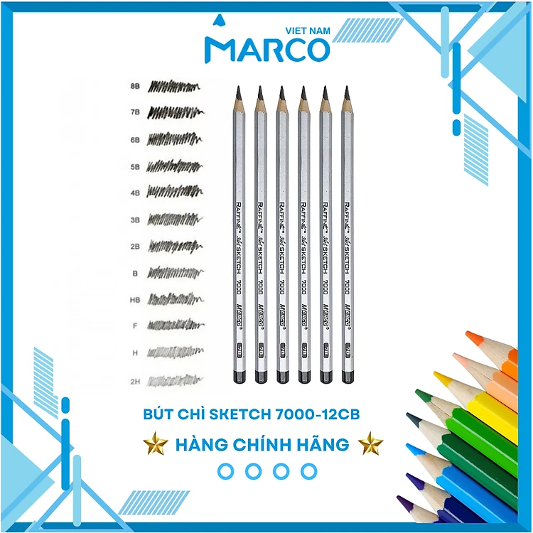 Combo 6 Bút Chì Sketch Marco Lõi F dùng vẽ Sketch Art , vẽ phác thảo chuyên nghiệp 7000-12CB