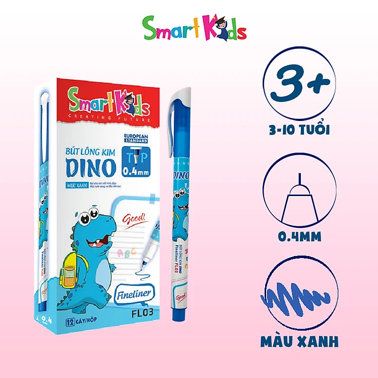 Combo 6 bút lông kim Smartkids Dino mực xanh (0.4mm) FL03