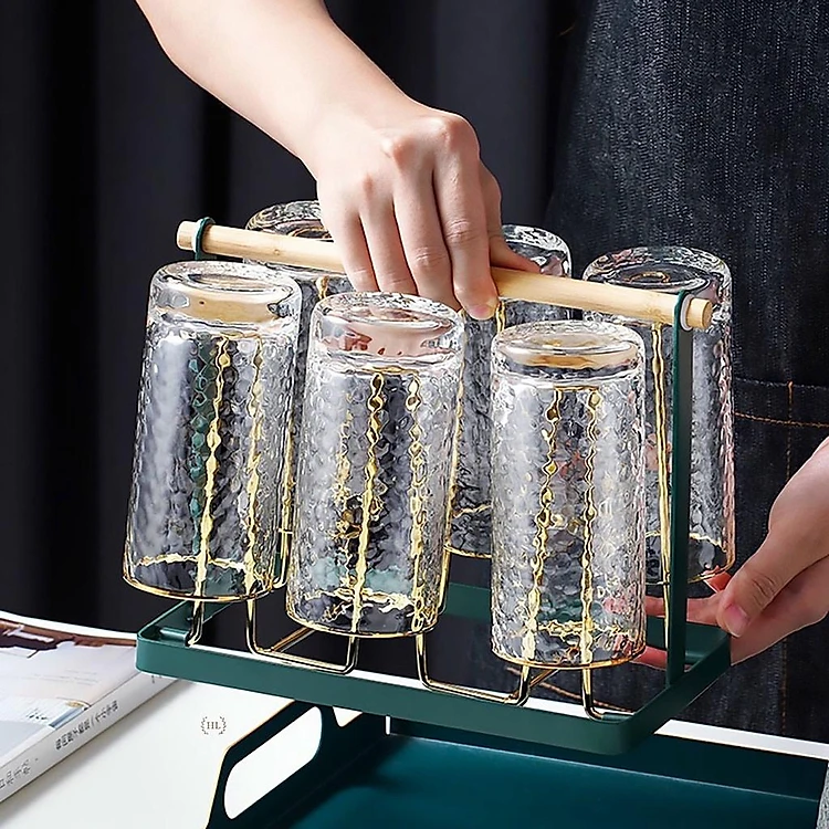 Combo 6 cốc uống nước thủy tinh chịu nhiệt cao cấp kèm giá úp