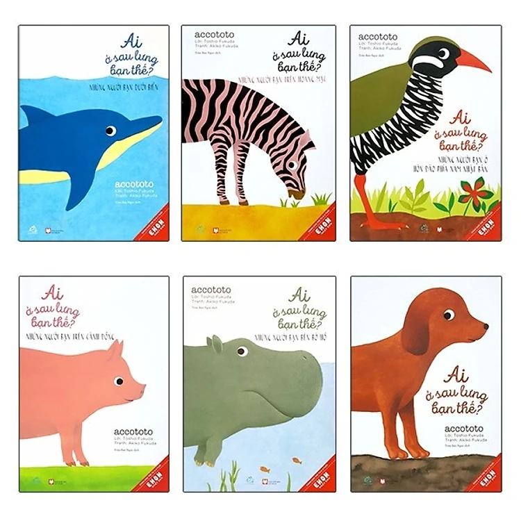 Ai Ở Sau Lưng Bạn Thế với chủ đề về các loài động vật. Điểm thú vị của truyện chính là những bức tranh gồm một loài động vật cụ thể và một phần chi tiết về một con vật khác. Các mẹ và các bé có thể cùng đọc và cùng chơi trò chơi đoán xem bộ phận đó của con vật nào. Bộ truyện bao gồm 6 cuốn: