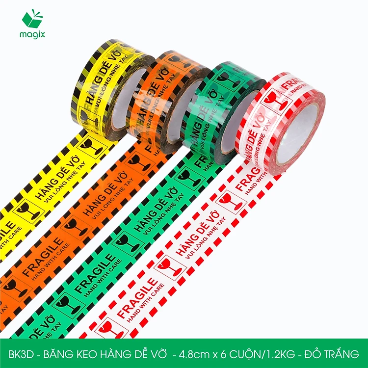 Combo 6 cuộn băng keo HÀNG DỄ VỠ 4.8 cm - Băng dính niêm phong đóng hàng - Nhiều màu