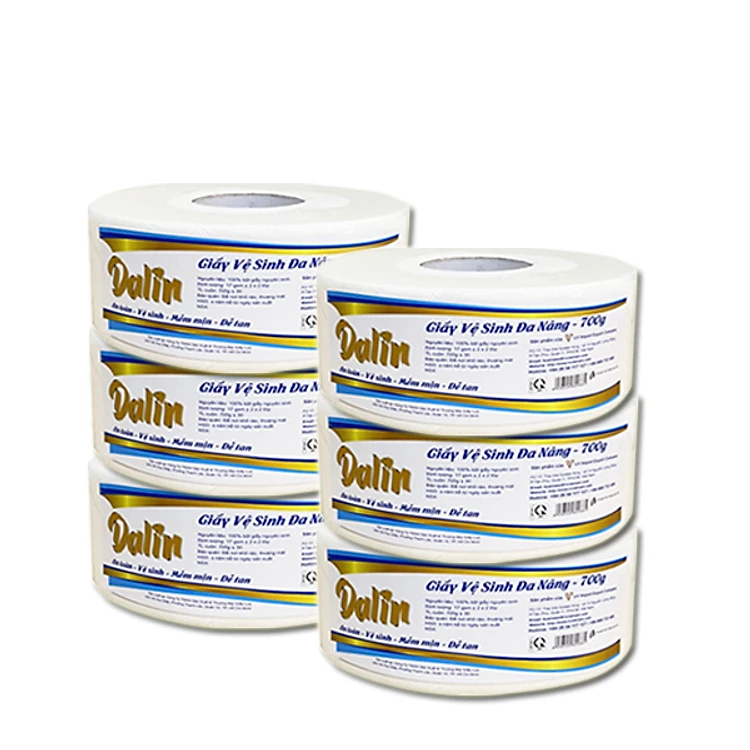 GIẤY VỆ SINH DALIN CUỘN LỚN 700G được sản xuất bởi thương hiệu chuyên về giấy vệ sinh cao cấp an toàn.