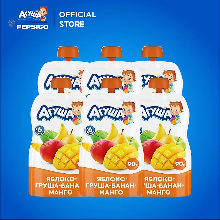 Combo 6 Gói Trái cây nghiền vị táo, lê, chuối và xoài Agusha 90g/gói dành cho bé từ 6 tháng trở lên