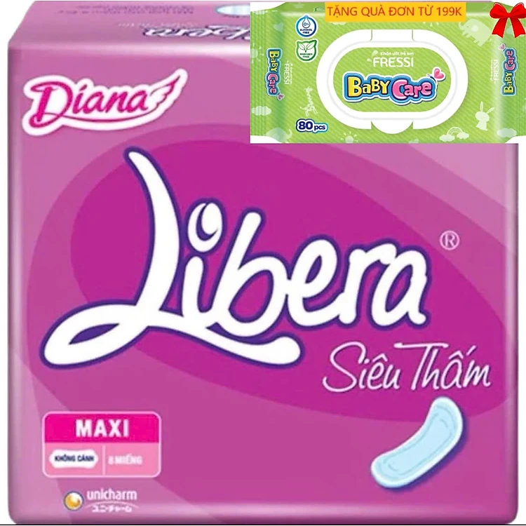 Combo 6 Gói Băng Vệ Sinh Diana Libera Siêu Thấm Maxi Không Cánh (Libera Dày Không Cánh)23cm-8 Miếng/Gói -Date luôn mới