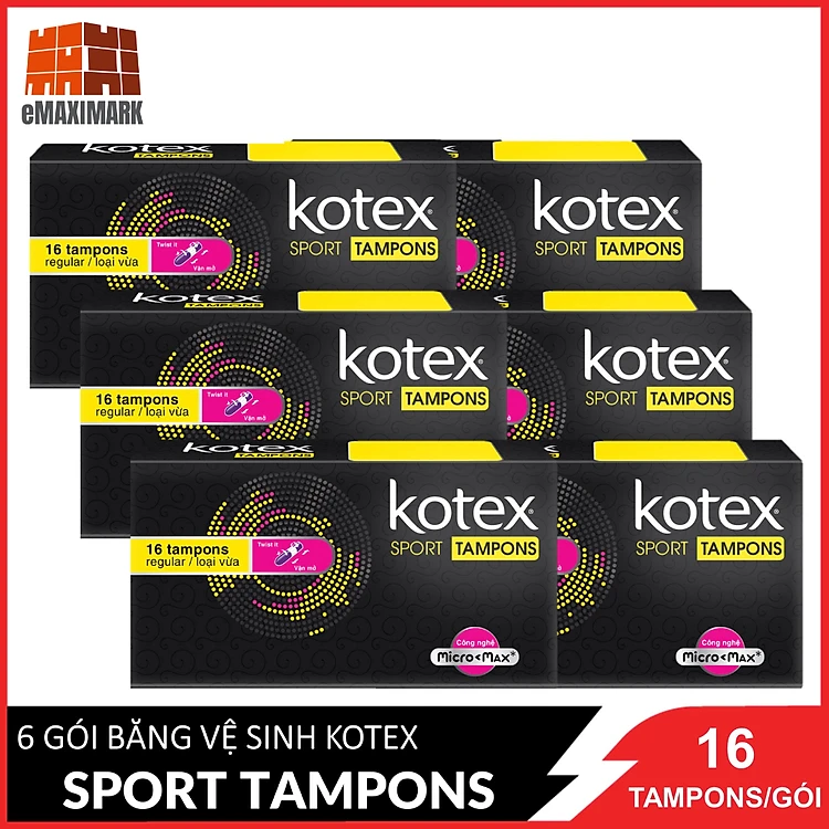Combo 6 Gói Băng Vệ Sinh Kotex Sport Tampon Loại Vừa Tampon Regular 16 Miếng / Gói