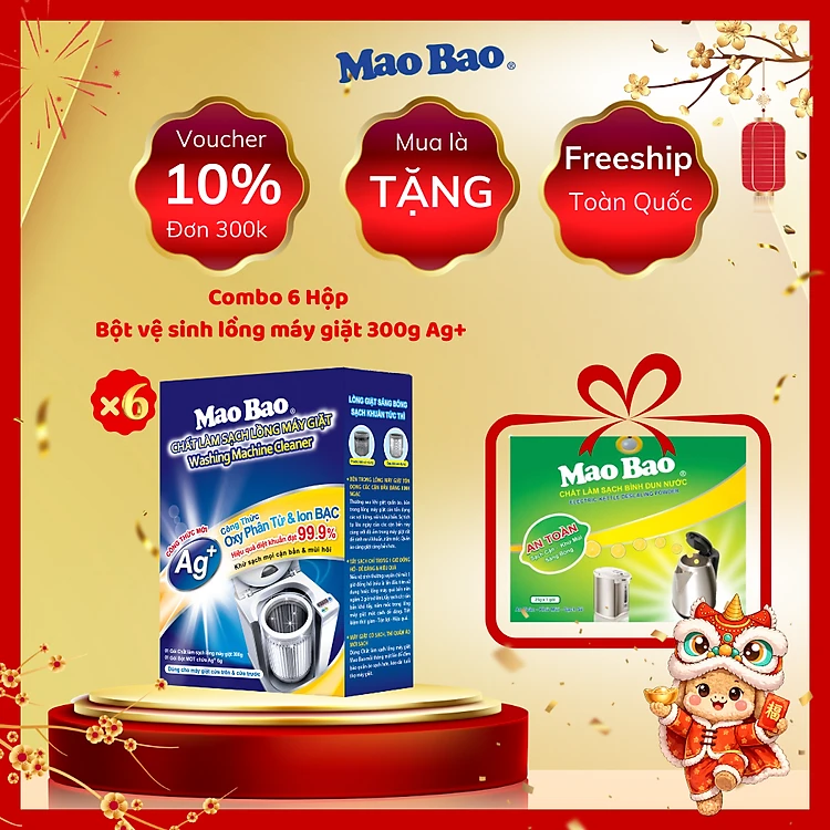 Combo 6 Hộp Bột Tẩy Vệ Sinh Lồng Máy Giặt Mao Bao 306g