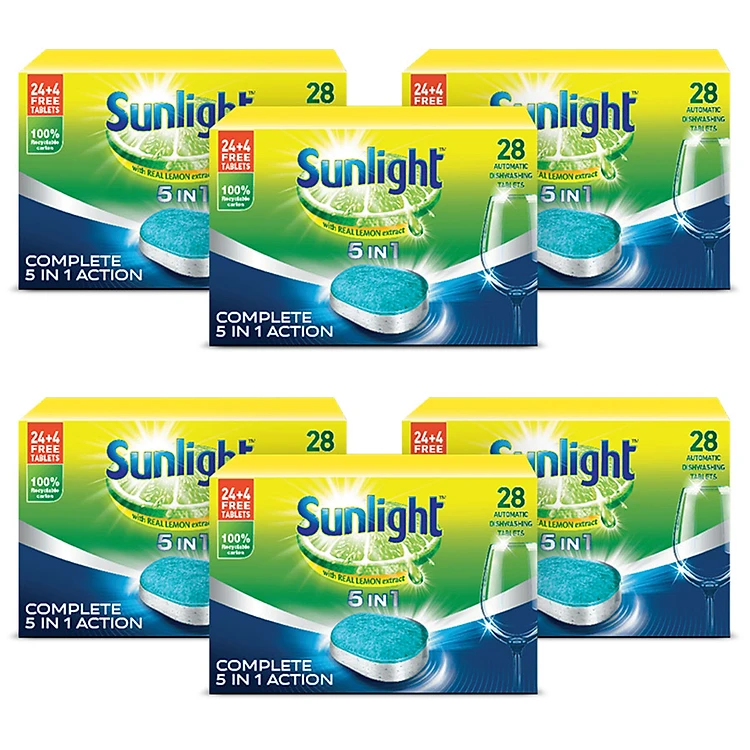 Combo 6 Hộp Viên Rửa Chén Bát (28V/hộp) Sunlight 5 in 1 Cho máy rửa chén bát Công nghệ PureClean không để lại vêt ố