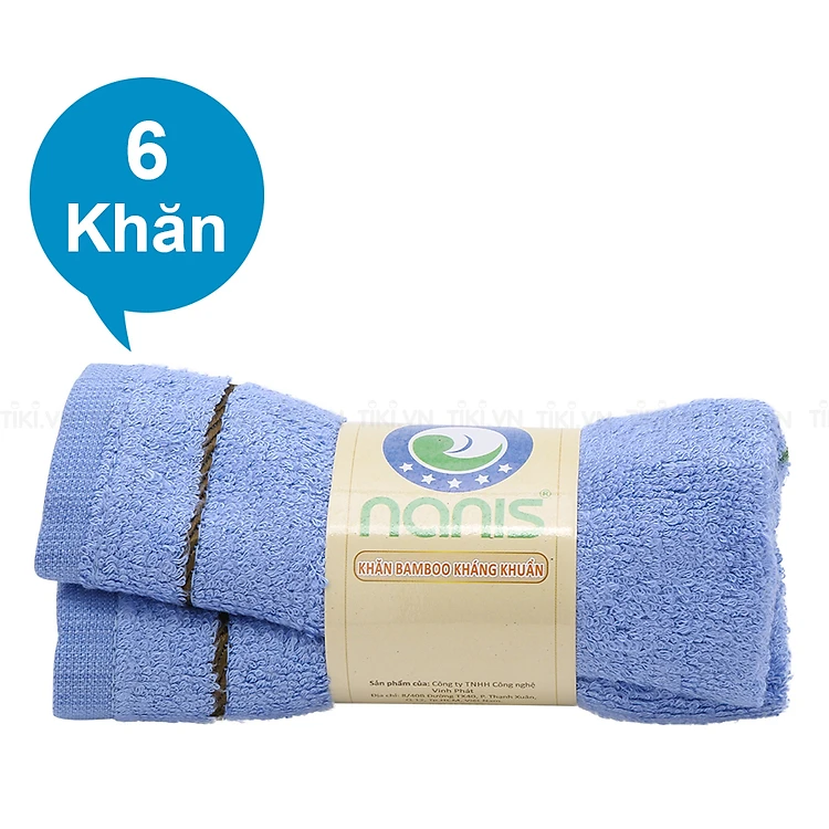 - Combo 6 Khăn Lông Sợi Tre Nanis với thành phần sợi tre mềm mại thấm hút tốt, đặc biệt là khả năng kháng khuẩn vượt trội.