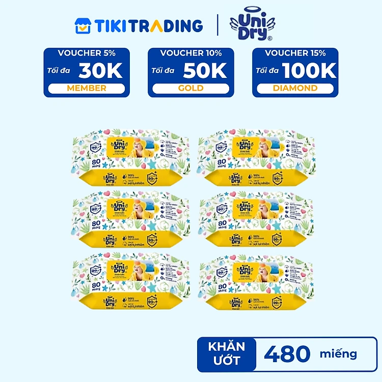 Combo 6 Khăn ướt em bé UniDry Baby WTP - 80 miếng