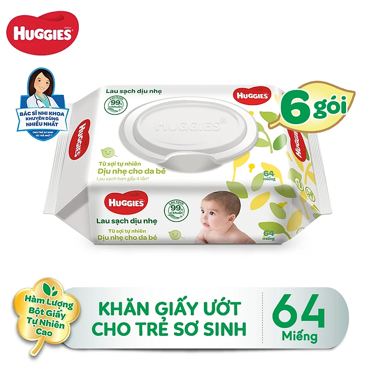 06 gói Khăn giấy ướt sơ sinh Huggies gói 64 tờ