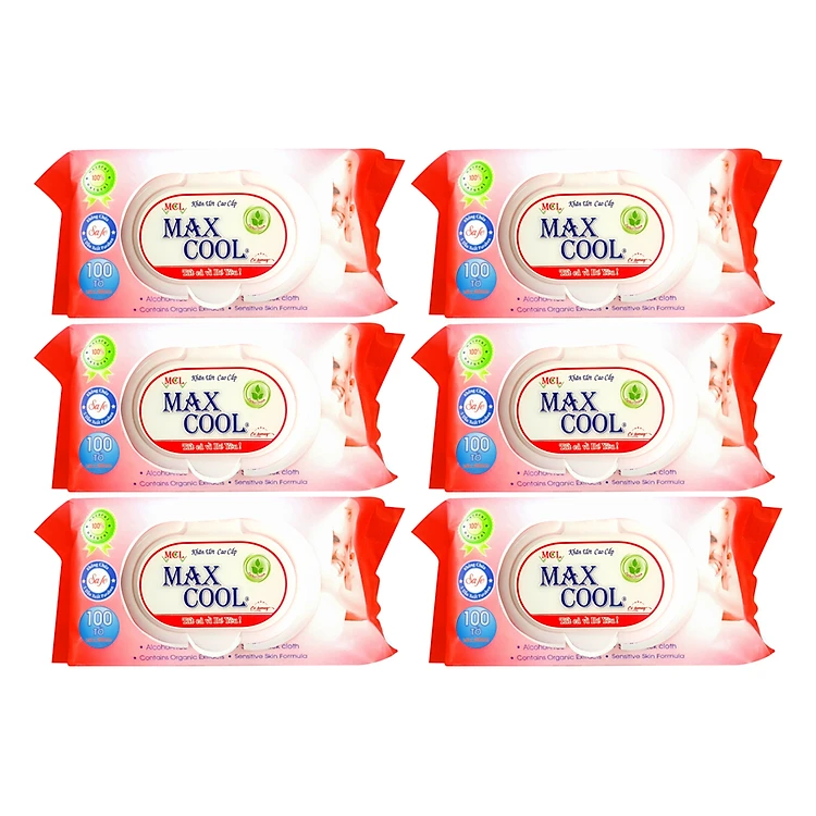 - Combo 6 Khăn Ướt Max Cool Hương Phấn Nhẹ Nhàng (100 Tờ x 6)an toàn sức khỏe trẻ với các thành phần chiết xuất từ tự nhiên.