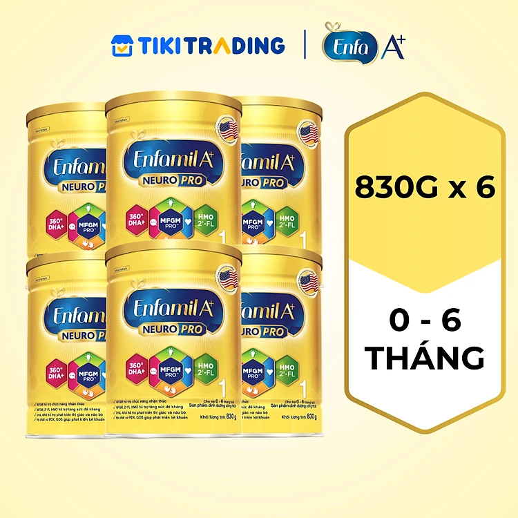 Bộ 6 lon sữa bột Enfamil A+ Neuropro 1 830g với DHA giúp phát triển não bộ cho trẻ từ 0-6 tháng tuổi
