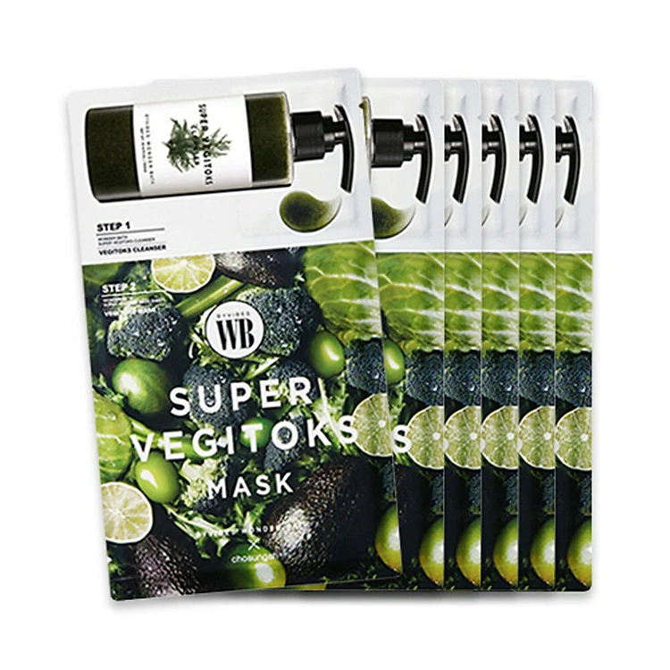 Combo 6 Mặt Nạ 2 Bước Thải Độc, Dưỡng Trắng và Cấp Ẩm Cho Da Wonder Bath Super Vegitoks Mask 28ml