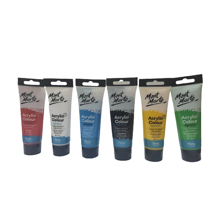 - Bộ 6 màu gồm: Vermillion, Titanium White, Cerulean-Blue, Lamp Black, Medium Yellow và Monastral Green.