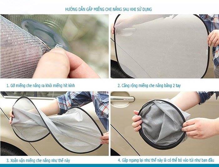 Mỗi bộ sản phẩm có 6 mảnh cho các cửa kính của ô tô 4 chỗ, có thể gấp lại gọn gàng sau khi sử dụng