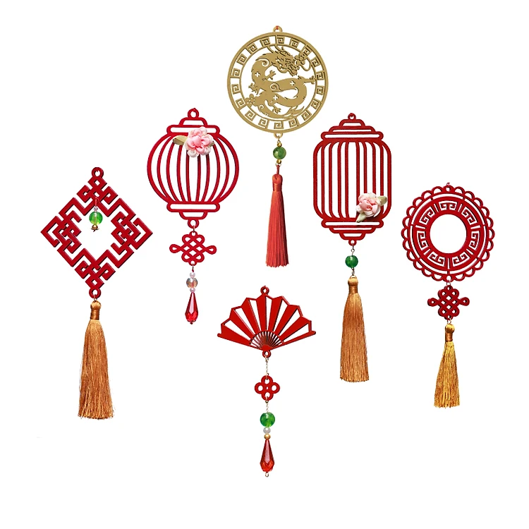 Combo 6D - Bộ 6 dây treo trang trí Tết Khai Lộc Hoàng Kim màu đỏ, trang trí mai, đào