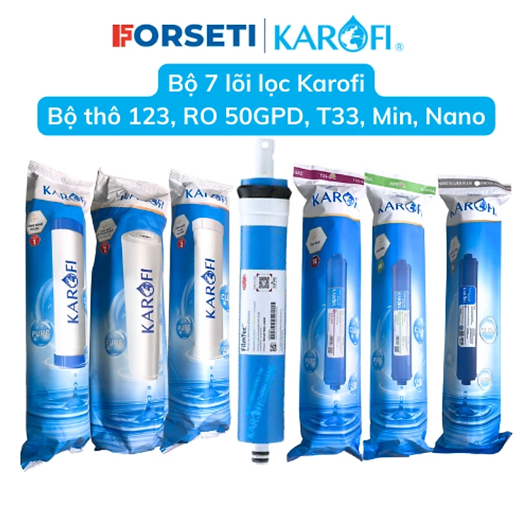 Combo 7 lõi lọc nước dành cho máy lọc Karofi 7 cấp ( Lõi 123+RO+Mineral+Gac T33+Nanosilver) ( Hàng chính hãng)