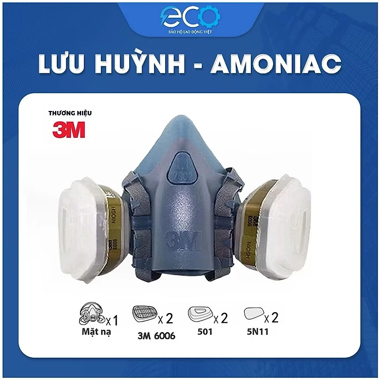 Combo (7 món) mặt nạ phòng độc 3M 7501, 7502 kết hợp phin lọc 3M 6006, tấm lọc bụi 5N11 cùng nắp giữ 501 lọc hơi hữu cơ Vô cơ, lọc bụi siêu mịn, phun sơn Lọc hơi độc chính hãng 3M