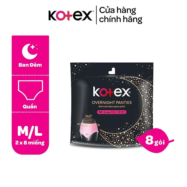 Combo 8 gói BVS Kotex Ban Đêm dạng quần cỡ M/L/L/XL 2 miếng