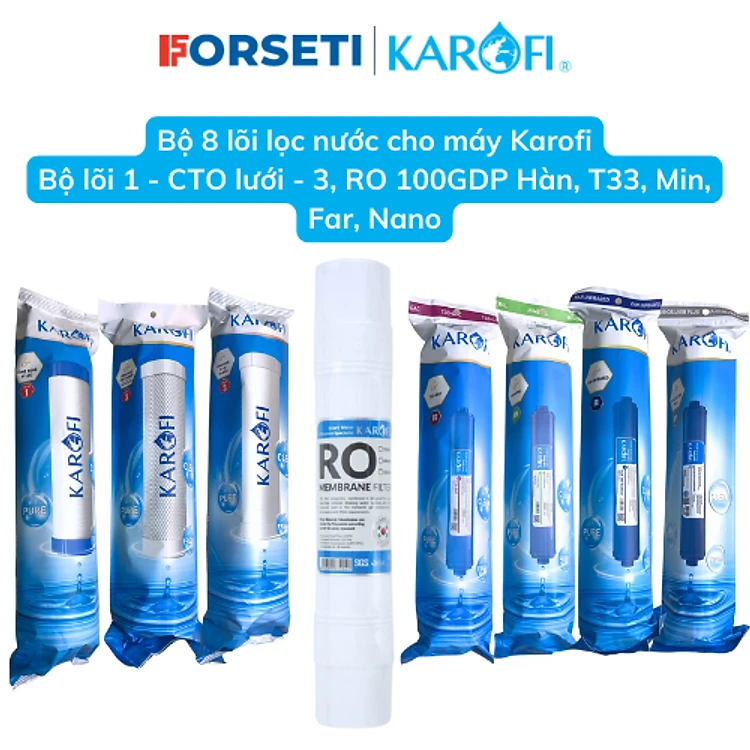 Combo 8 lõi lọc nước Karofi Hàng chính hãng dùng cho máy lọc nước Karofi 8 cấp S-S038