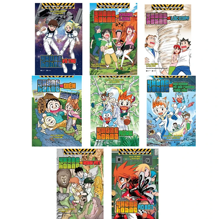 Combo 8Q Truyện Tranh Tri Thức Khoa Học : Khủng Hoảng Vũ Trụ + Khủng Hoảng Về Khủng Long + Khủng Hoảng Về Lốc Xoáy + Khủng Hoảng Về Đại Dương Và Môi Trường Toàn Cầu + Khủng Hoảng Về Động Vật + Khủng Hoảng Về Điện + Khủng Hoảng Rô Bốt + Khủng Hoảng Rừng