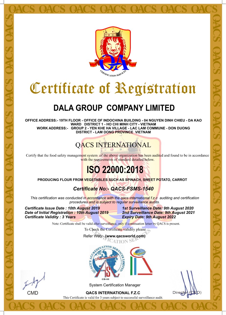 Toàn bộ bột rau củ sấy ép lạnh từ Dalahouse đều được sản xuất theo công nghệ khép kín từ khâu trồng trọt trên trang trại cao hơn 1000m ở Lâm Đồng, thu hoạch cẩn thận và đưa vào công nghệ Nhật Bản sấy lạnh giúp duy trì 99% chất xơ và chất dinh dưỡng có trong sản phẩm. Đặc biệt, mẹ thêm phần an tâm hơn khi lựa chọn thương hiệu Dalahouse bởi những chứng nhận thực phẩm Quốc Tế mà thương hiệu đã đạt được như: