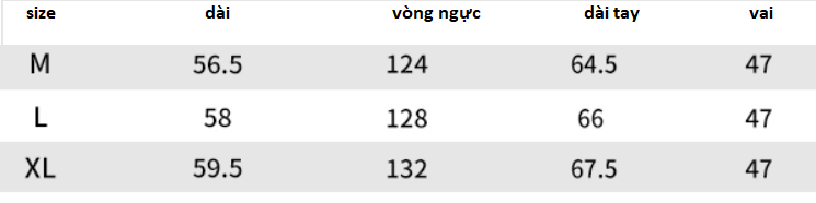Size tham khảo: