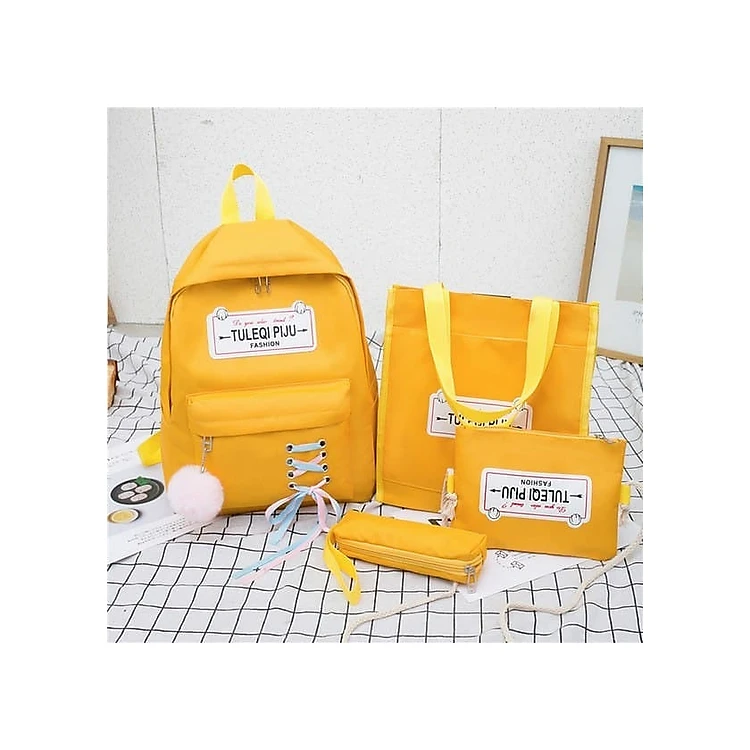 Combo Balo Sinh Viên Nữ Trọn Bộ 4 Balo Túi Xách Ví Hộp Đựng Bút Balo Quai Đeo Rộng Êm Ái Đường May Bền Đẹp Chắc Chắn Họa Tiết Sang Trọng Tuleqi Piju Fashion (Không bao gồm cục bông trang trí)