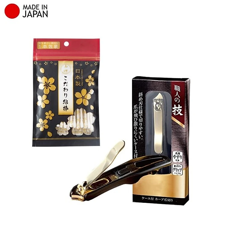 Combo bấm móng tay cao cấp Echo Metal 119mm + gói 50 tăm bông kháng khuẩn - nội địa Nhật Bản