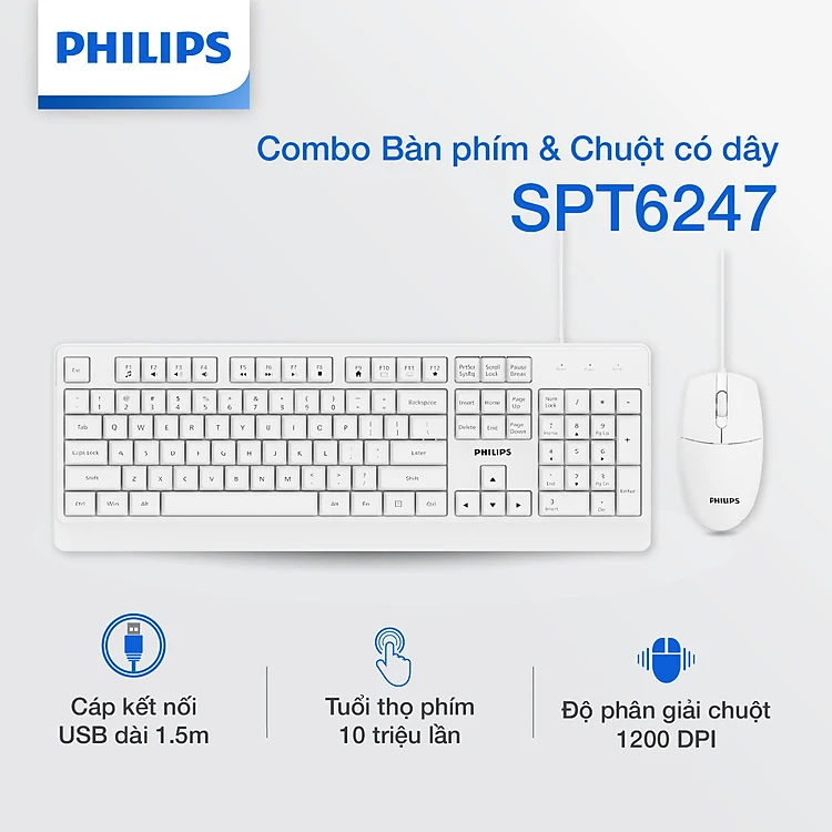 Combo Bàn phím và Chuột có dây Philips SPT6247 - Hàng chính hãng