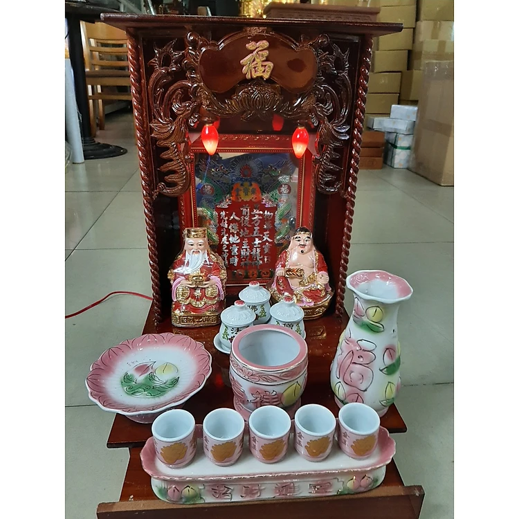Bàn thờ thần tài ông địa gỗ công nghiệp xoắn, Bộ Combo Bàn thờ Thần Tài Ông Địa 9 món gồm: