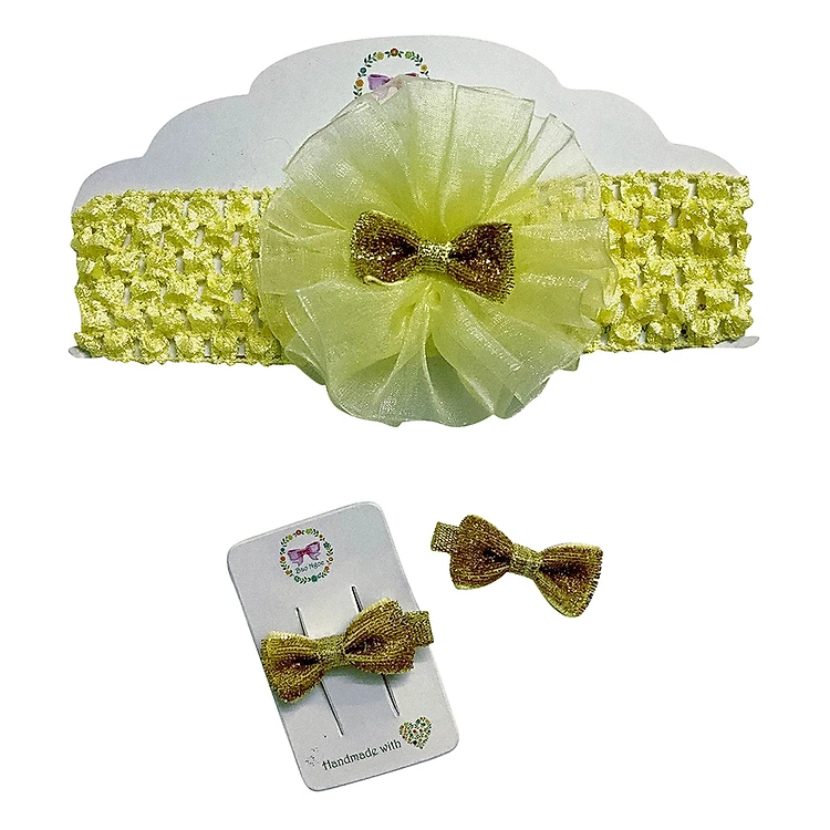 Combo Băng Đô - Kẹp Tóc Nơ Kim Tuyến Bảo Ngọc BN-2017-22 - Vàng