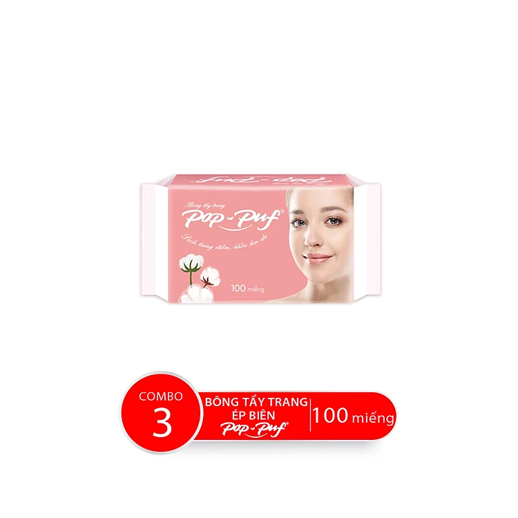 Combo Bao Bông Tẩy Trang Ép Biên POP-PUF, 100 Miếng/Bao