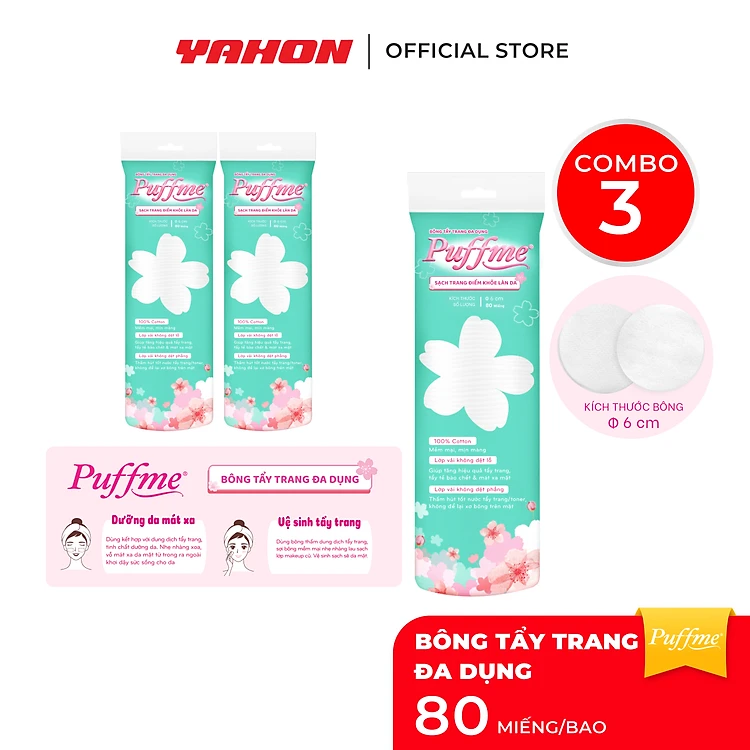 Combo Bao Bông Tẩy Trang Tròn PUFFME, 80 Miếng/Bao