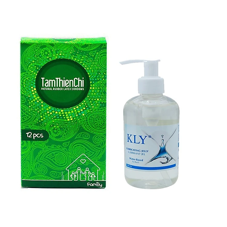 Combo Bao cao su Tâm Thiện Chí Family mỏng trơn (hộp 12 chiếc) và 1 chai gel KLY 250ml