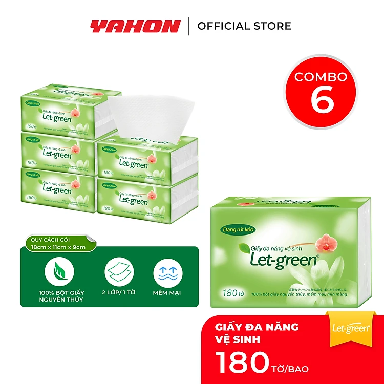 Khăn Giấy Vệ Sinh Đa Năng LET-GREEN 18*21cm | Bột Giấy Nguyên Thủy | 180 Tờ/Bao