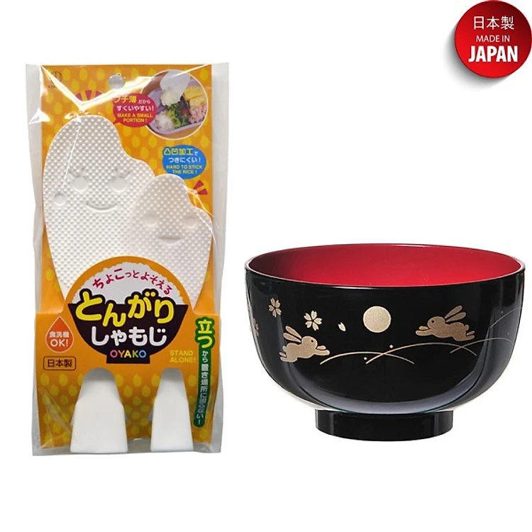 Combo bát nhựa tròn họa tiết thỏ/trăng 390ml + Set 2 chiếc muôi xới cơm - nội địa Nhật Bản
