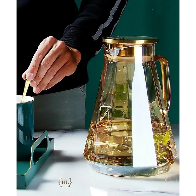 Combo bình đựng nước uống thủy tinh 6 cố vàng vân sọc và khay kim lọai mạ vàng