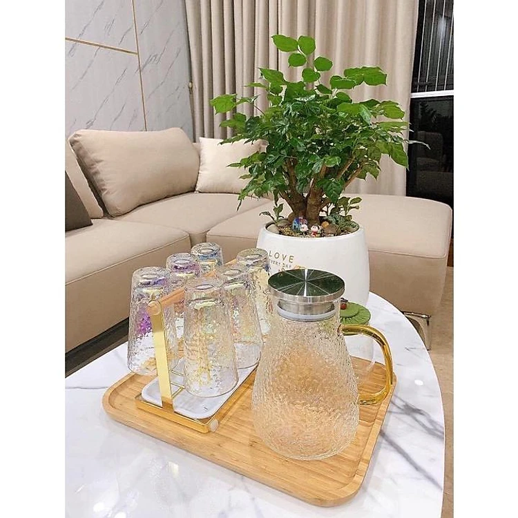 Combo bình đựng nước uống thủy tinh chịu nhiệt cao cấp kèm khay và giá úp cốc